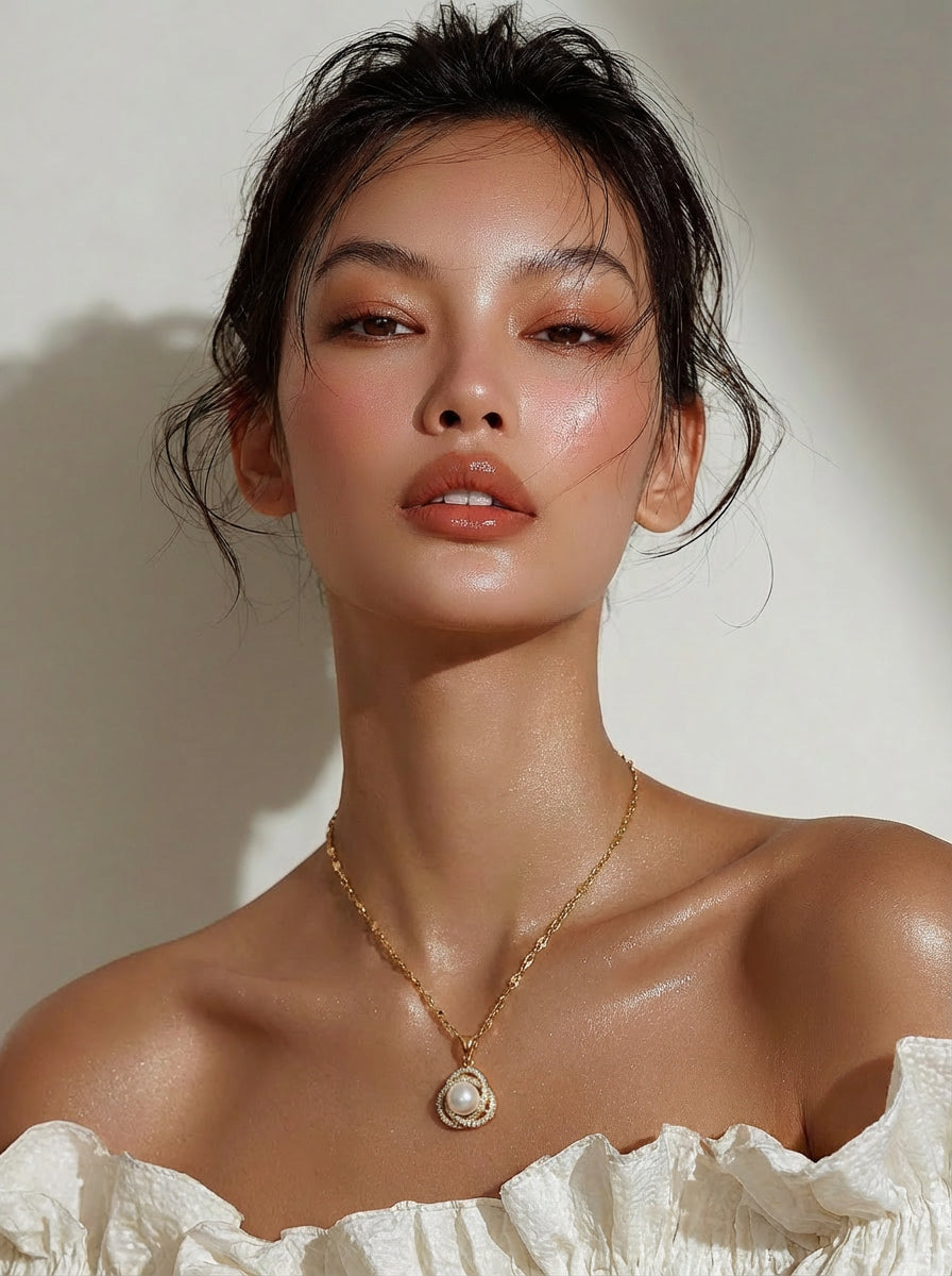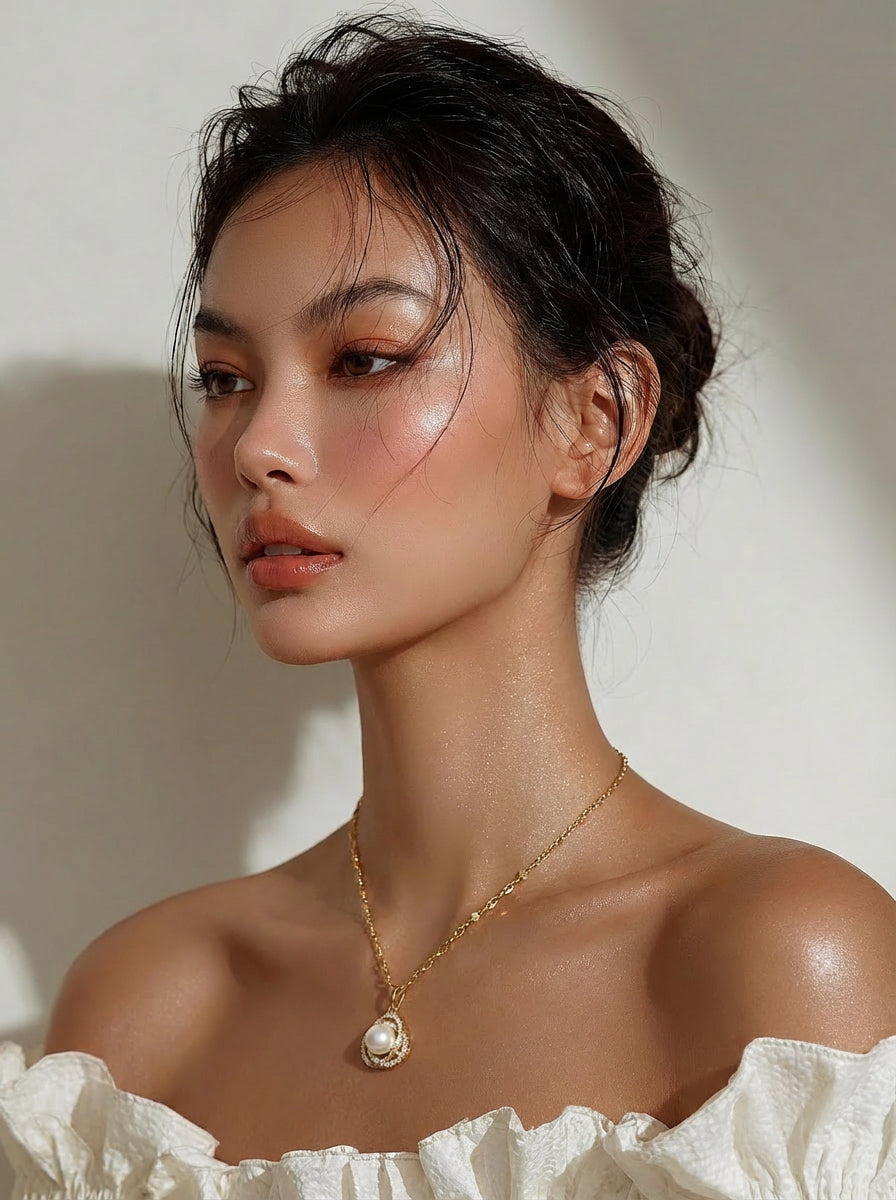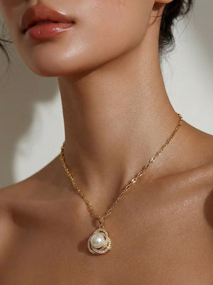 Éclat Double Halo Pearl Pendant Necklace