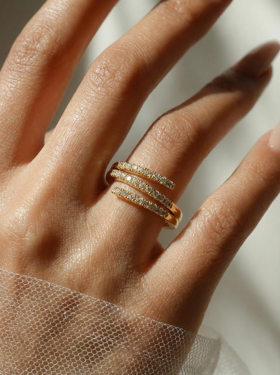 Triple Spiral Pavé Wrap Ring