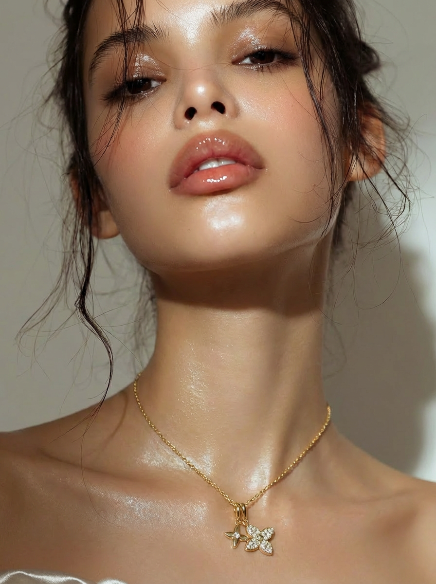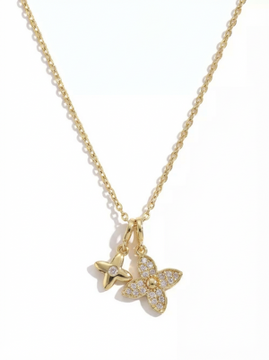 Dual Four-Petal Drop Pendant Necklace